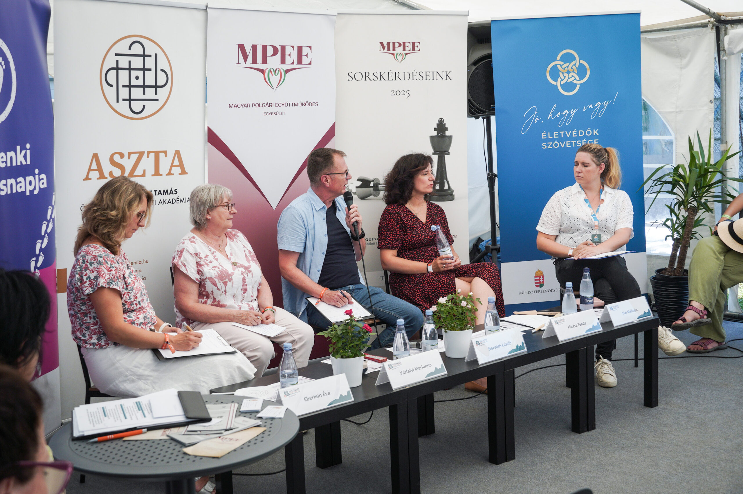 A kerekasztal-beszélgetésben részt vett: Várfalvi Marianna, a Magyar Védőnők Szakmai Szövetségének elnöke, Eberlein Éva identitás coach, Fűrész Tünde, a Kopp Mária Intézet a Népesedésért és a Családokért elnöke, valamint Horváth László drogügyi kormánybiztos. A beszélgetést Hal Melinda, klinikai szakpszichológus, az MCC munkatársa moderálta.