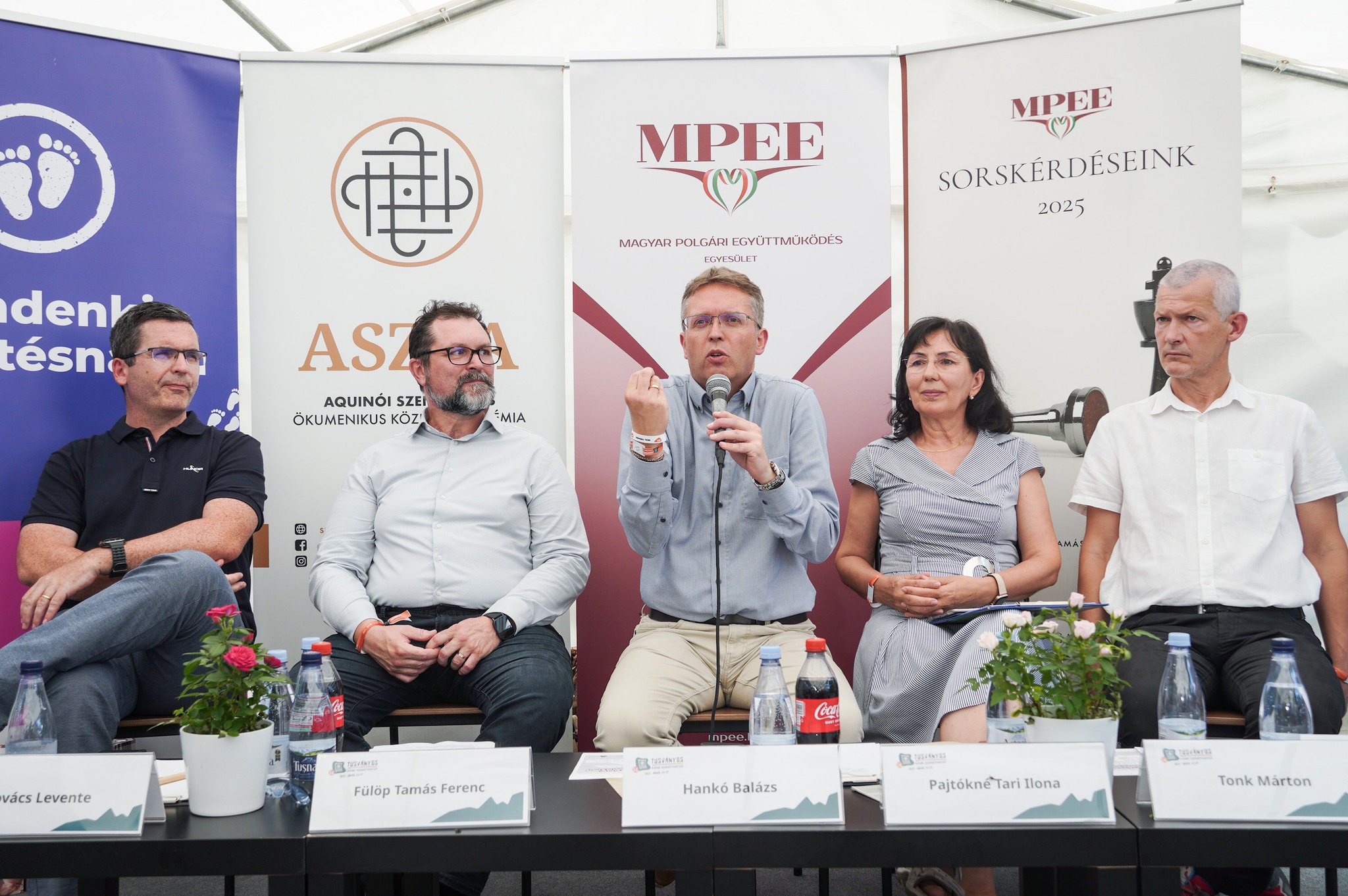 A magyar felsőoktatás jövőjéről és nemzetközi versenyképességének feltételeiről zajlott tartalmas kerekasztal-beszélgetés 34. Tusványoson, a Deák Ferenc sátorban. Az eseményen részt vett Hankó Balázs, a Kulturális és Innovációs Minisztérium minisztere, Fülöp Tamás Ferenc, a Neumann János Egyetem rektora, Pajtókné Tari Ilona, az Eszterházy Károly Katolikus Egyetem rektora, Tonk Márton, a Sapientia Erdélyi Magyar Tudományegyetem rektora, valamint Kovács Levente, az Óbudai Egyetem rektora. A beszélgetést Horváth Ágnes, a Magyar Polgári Együttműködés Egyesület főtitkára moderálta.
